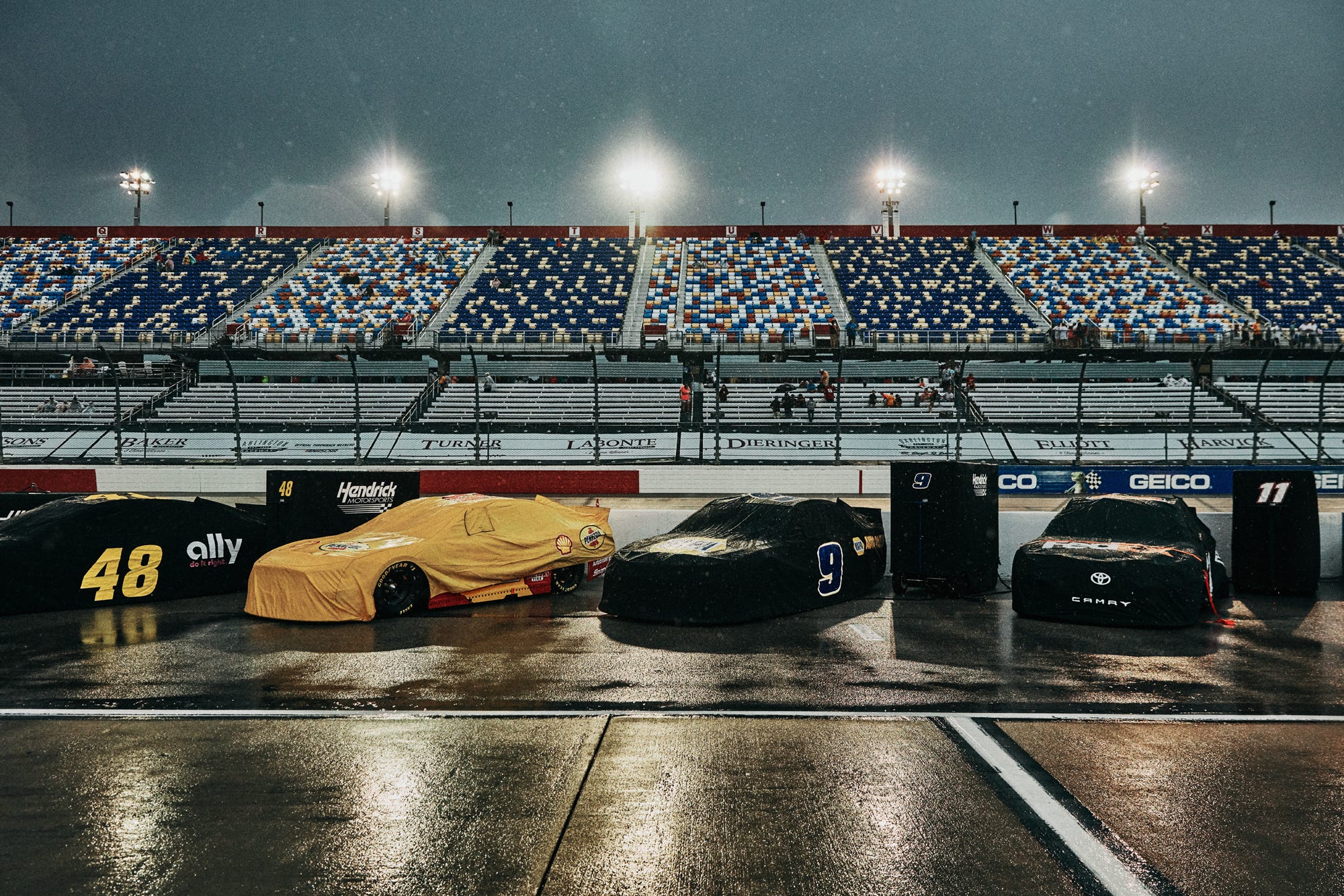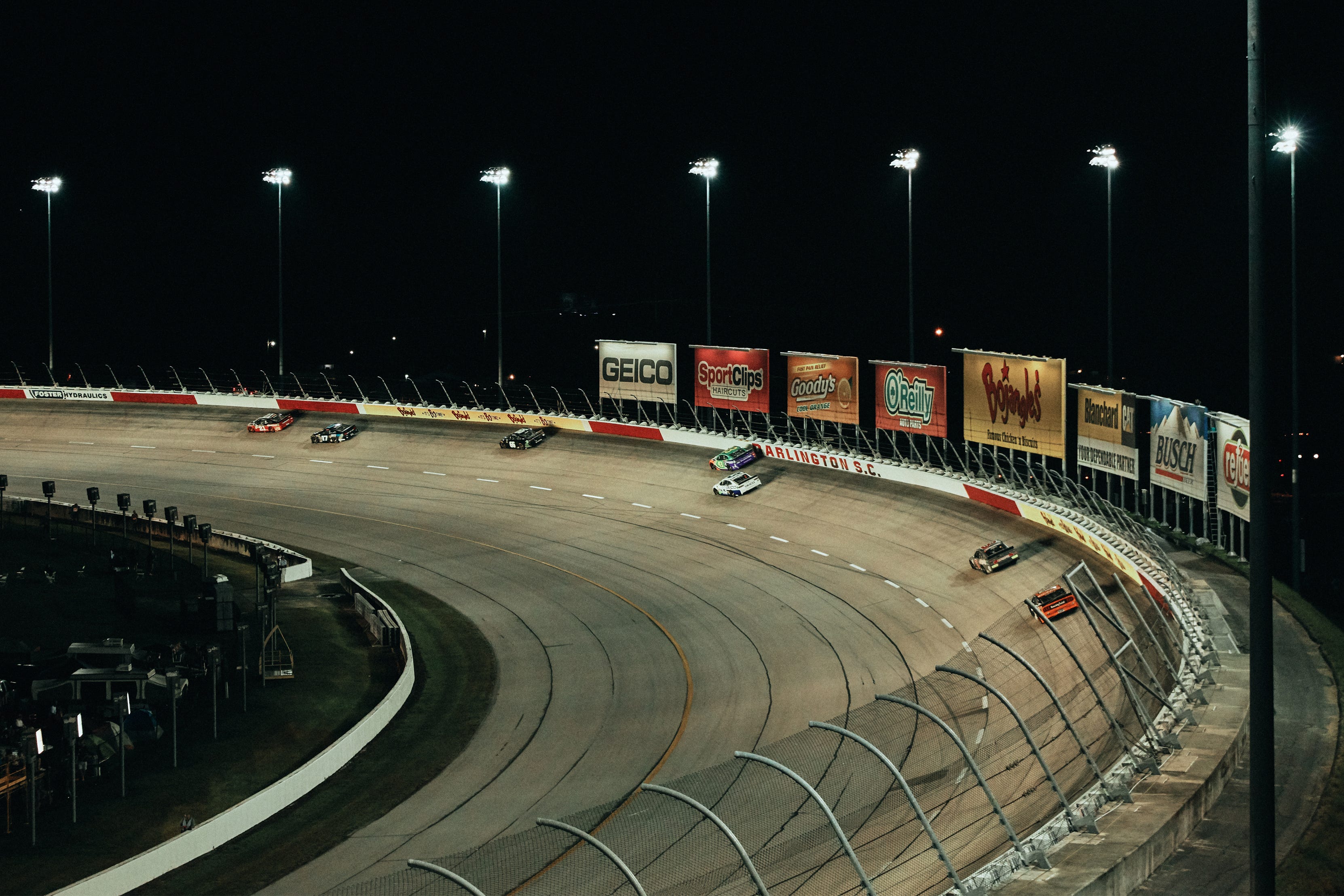 It’s late in Darlington, almost midnight. The front end of Hurricane Dorian delayed the Southern 500’s 6PM start by nearly four hours and the race is barely a quarter finished. But the cars roar on and no one has gone home.