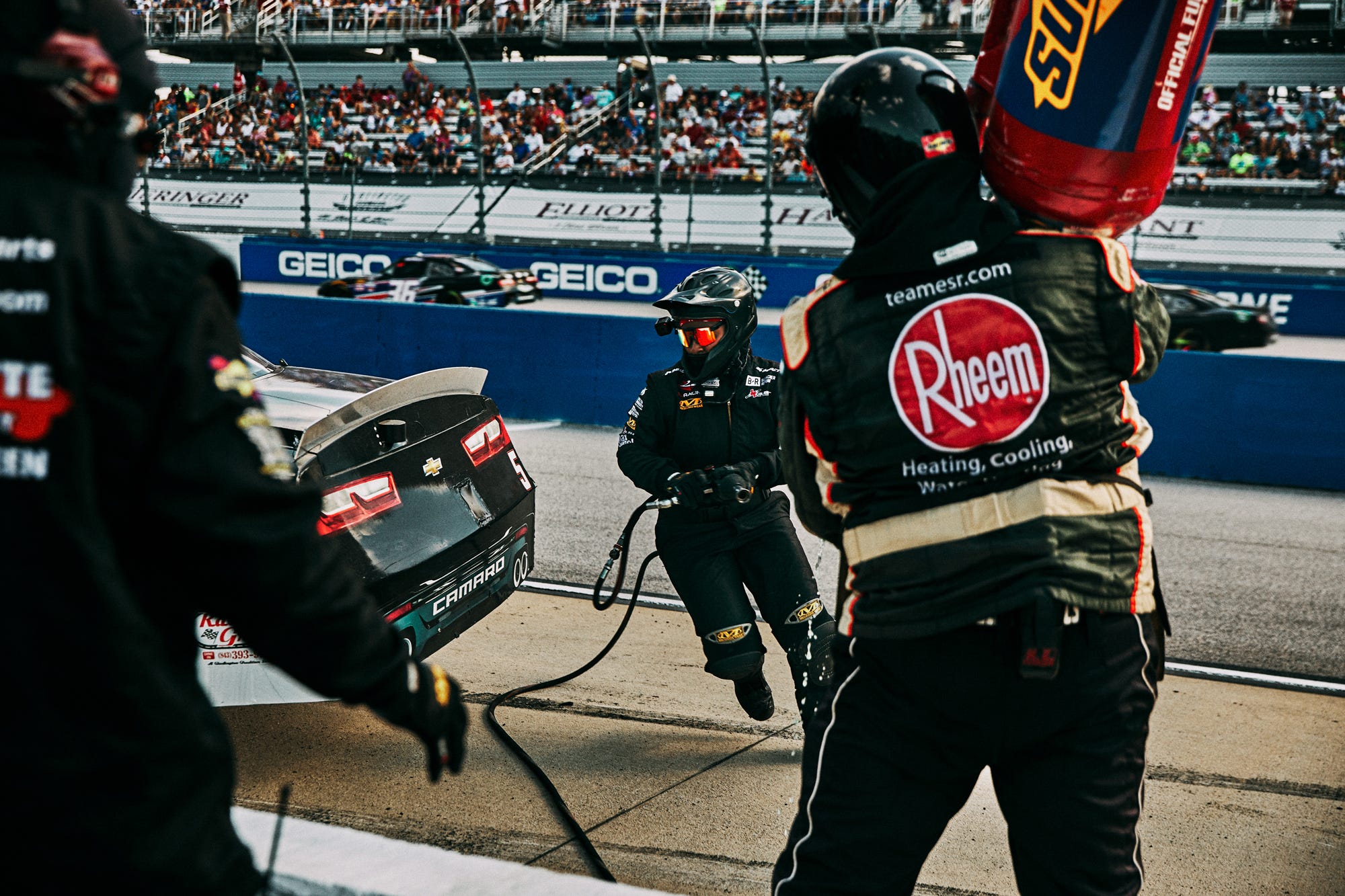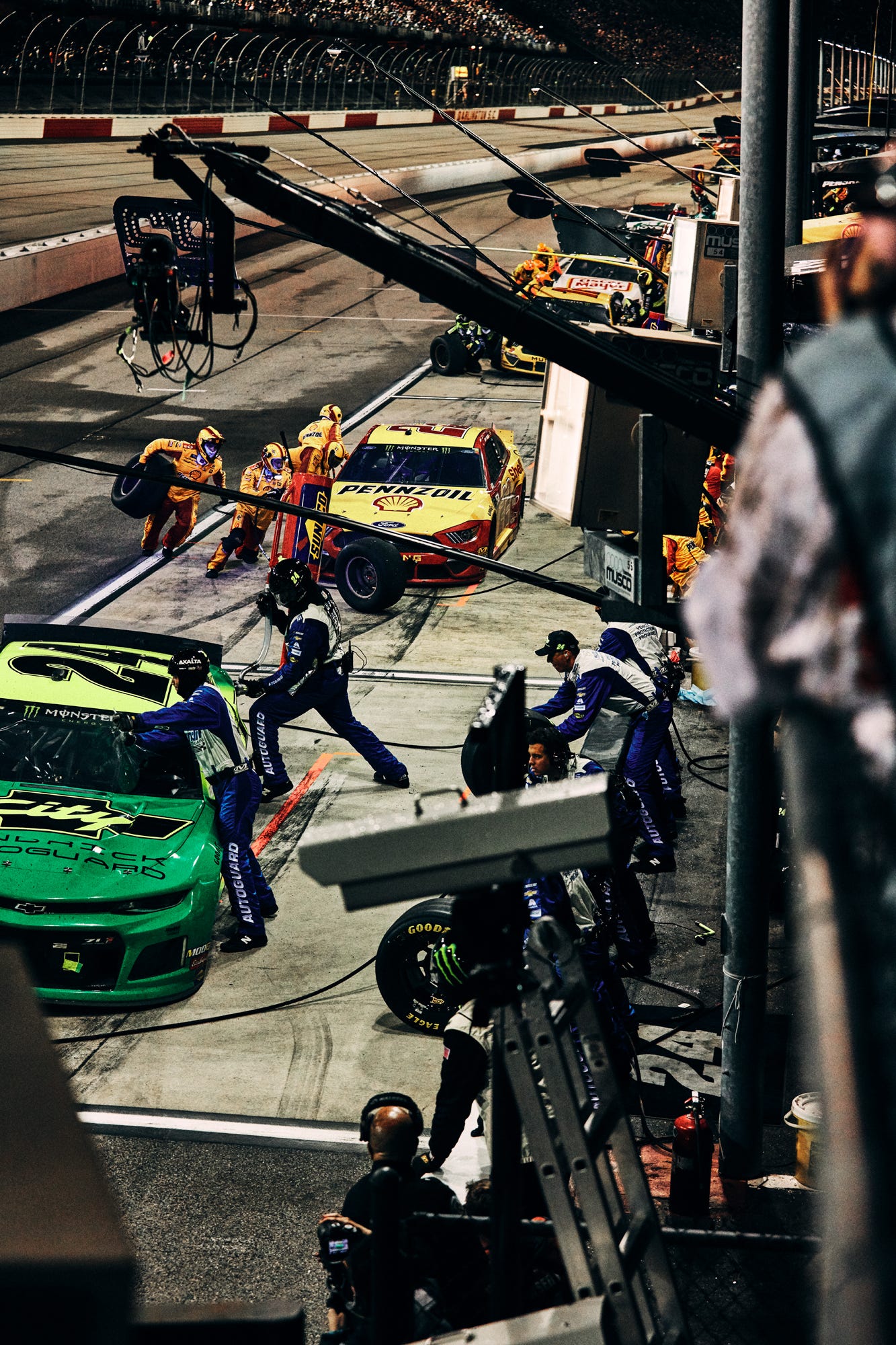 “Go go go go go!” the crew chief tells his driver via radio the instant the car hits pavement. The wheels spin as the driver smashes the gas pedal into the floor, coaxing the 800 or so horses beneath his hood back to life. Four fresh tires, a full tank of fuel, and precise race adjustments—all in under 15 seconds.