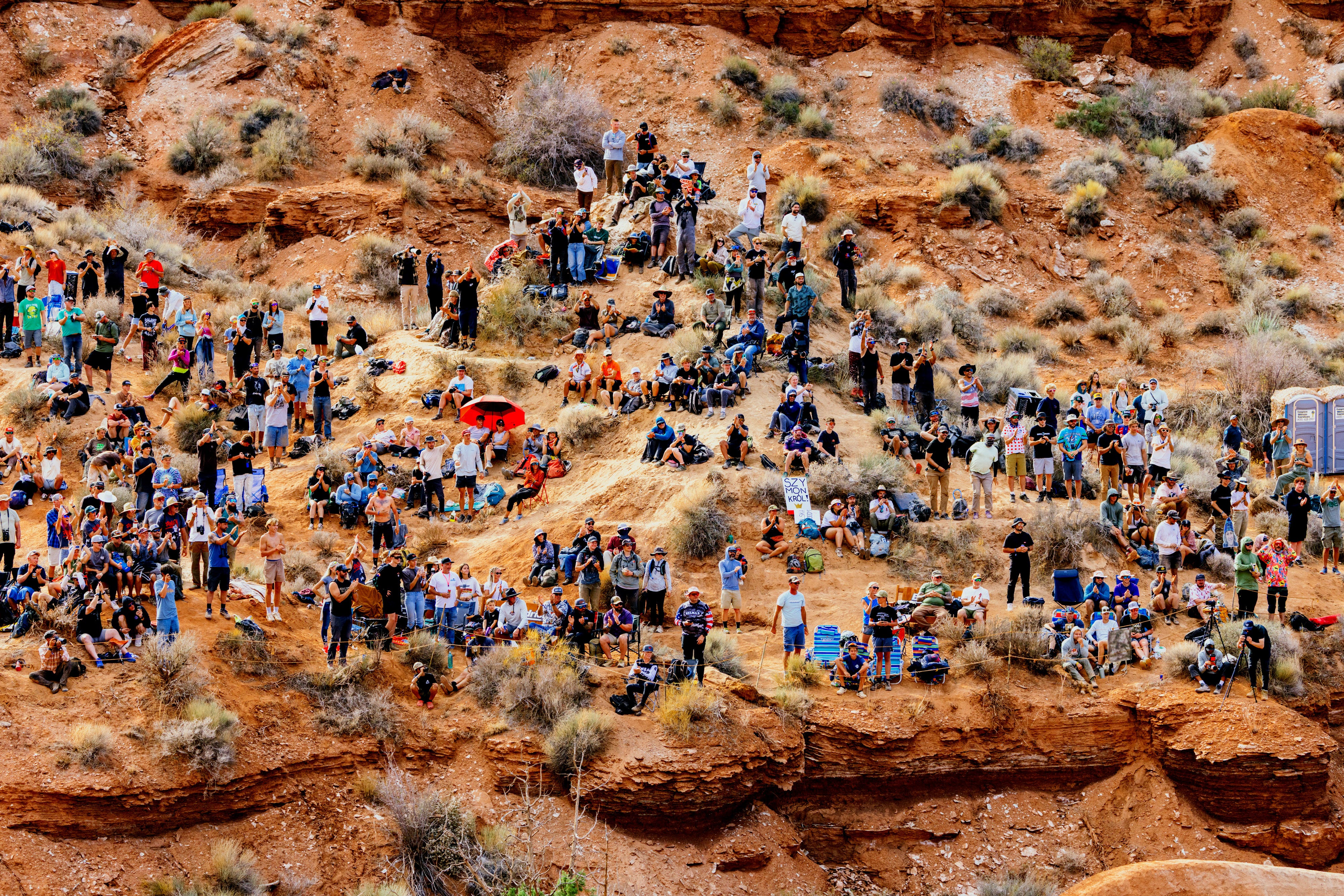 “I enjoyed watching the riders practice. It felt like the pressure was off and they were trying things out, workshopping. Everyone would get together, the riders, the diggers, and figure out what was working and what was not. It was cool to watch the gears turning in their heads. You don’t realize how much and collaboration goes into one of these routes. The diggers are there digging out the trails and pathways, and they’re getting immediate feedback from the riders, who’re saying things like, ‘I need this higher,’ or ‘This is actually starting to crumble. I need you to put some water on it.’ They’re rebuilding things. They’re making things larger. They’re widening things, shoring things up. Diggers were out there for hours flattening out lines, baking in the sun, packing them down, so that eventually it can be rideable. And then they go up and do it all over again. The rider’s life is kind of in the digger’s hands, I think. There’s a lot of pressure to make a safe route for the riders. It’s probably more stressful than the actual ride. If a rider wiped out, the diggers took it hard. They were usually the first on the scene. There was even an award given out to the diggers based on how inventive the line was, how beautiful or well-constructed it was, or how original it was. The diggers are the unsung heroes of the entire event, so it was cool to see them be put on a pedestal. They’re usually riders themselves, and some of the riders are former diggers.”