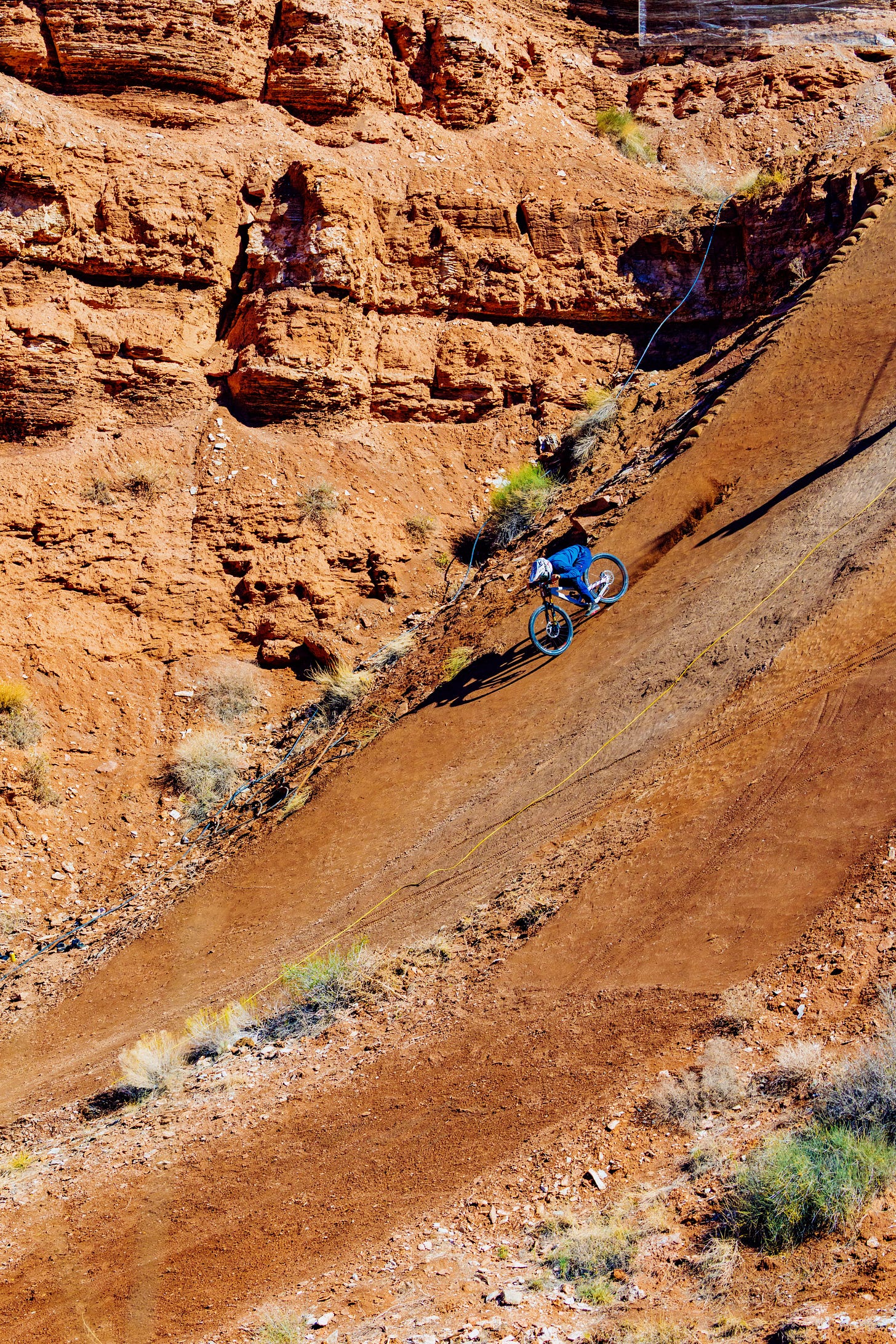 “See that wooden structure up top? That’s where the riders started. They choose a side to go off, choose which ridge line to take. It’s anyone’s game. There might be two or three different routes directly off the structure, but when they hit the next ridge it splits off again into like three other routes they could take. Some are from years prior, or are built on previous years’ routes. Most of them are brand new. They’ve been working on them for weeks. The diggers have been perfecting them right up to the minute that the riders shoot down. During the trial, the riders are figuring out what their route could be, how it’s doing, where it’s going to go. It’s pretty planned because it is so extreme and one wrong move could mean you’re horribly injured or even worse.