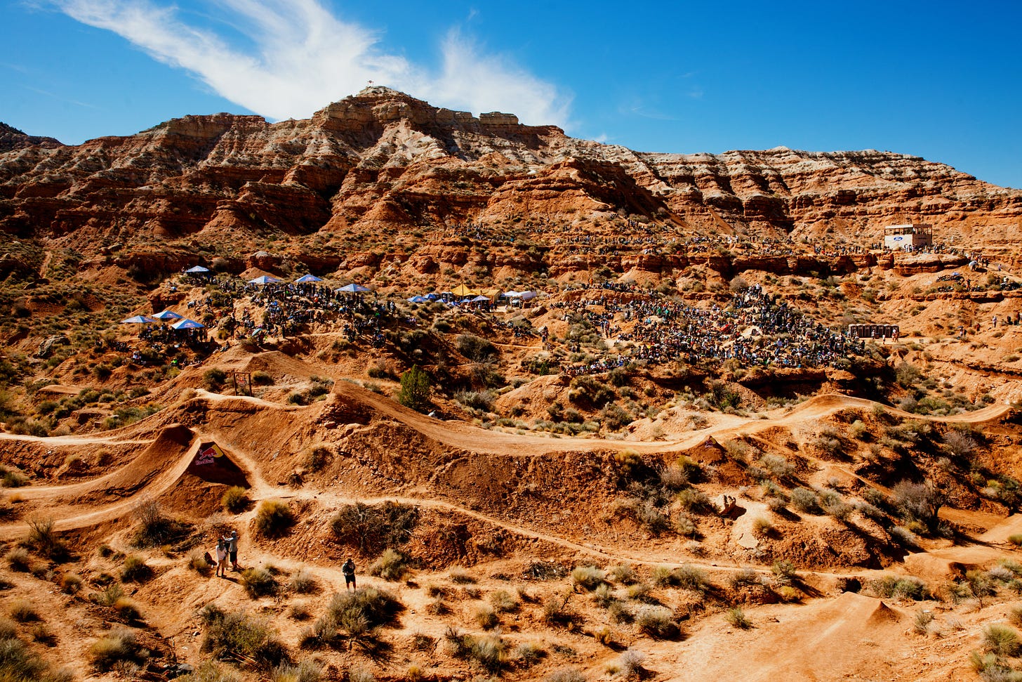 Peter Fisher: “It was so extreme. The stuff online did an okay job conveying how extreme it was, but it wasn’t until I was actually standing there watching this go down, looking at all these trails and ridges, that I was like, ‘Holy shit, someone’s going to launch off that.’ Even to get there, you have to take this shuttle up these dirt roads that are bouncing you everywhere, and then you have to hike in. It’s not close to the parking lot. It’s not close to anything.”