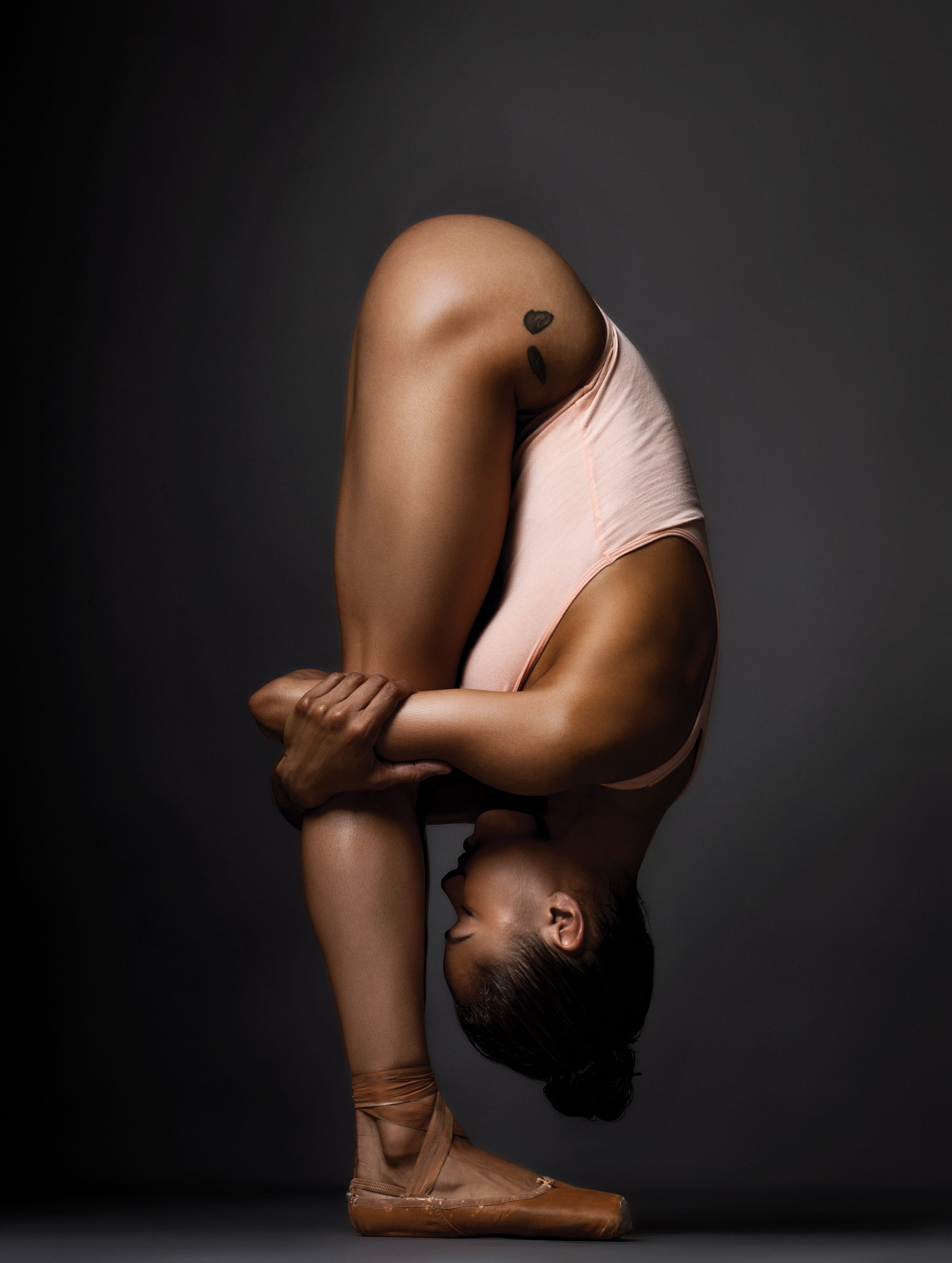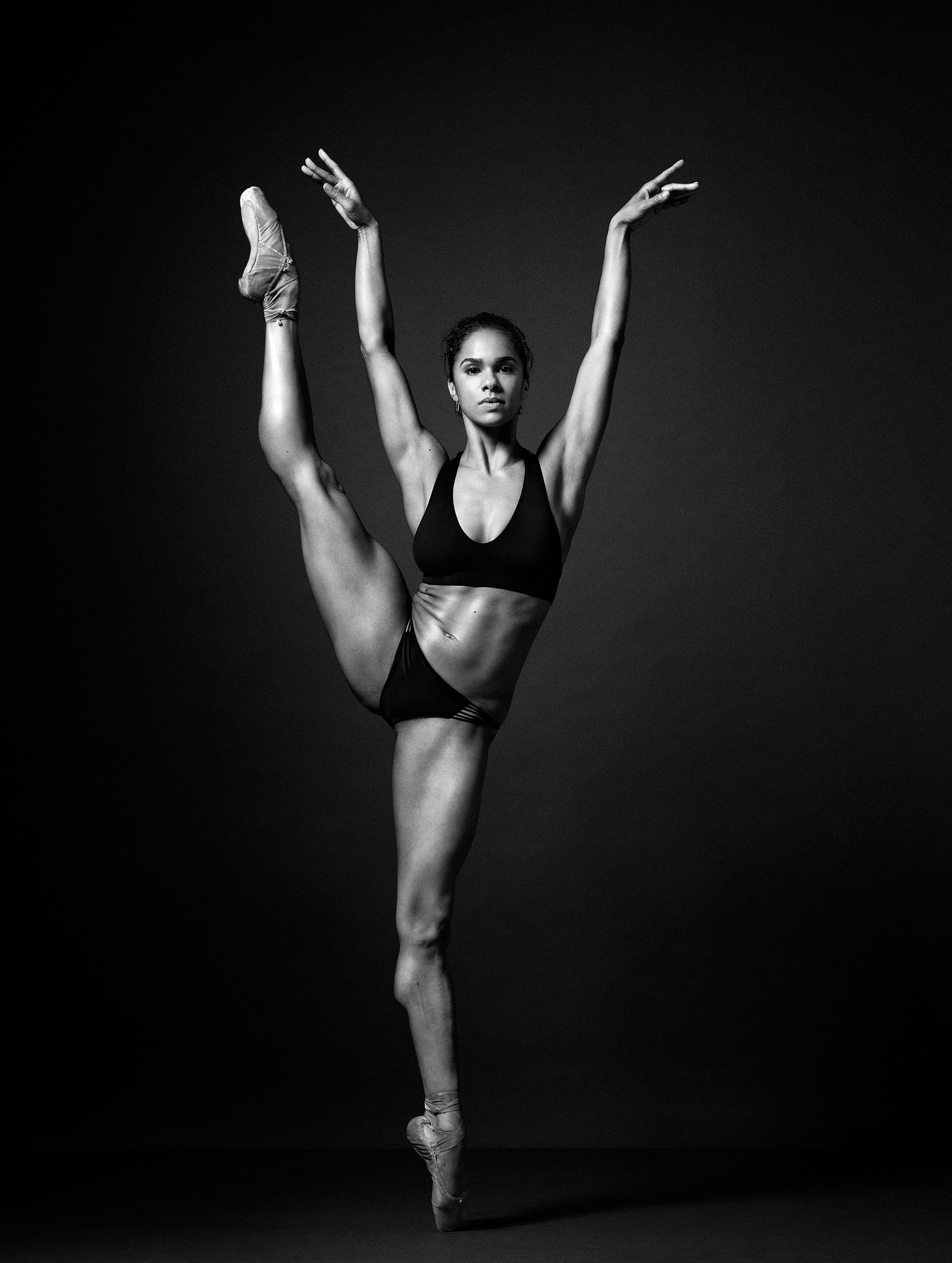 Ballerinas appear much smaller in person than in their elongated physical states onstage. Beyond being the first black principal in ABT, Copeland has been recognized for a body that is atypical in the ballet world: thick, strong legs, broad shoulders, large chest. For whatever reason, I assumed these were overblown characterizations— the way the modeling business deems anyone over a size 4 “plus size.” I figured that in person, Copeland would look like a typical ballerina. But when she strode into the rehearsal space, wearing a fitted red halter top, a giant pink tutu, and pale tights, I was in awe of her pronounced physical strength. At 5’2”, she is predictably much shorter than she looks in performance, but she is a powerhouse. She is extraordinarily lean, but she has heft and shape. She looks like she could hold her own in the boxing ring. Ballet is either the most performance-centric of all athletics or the most athletic of all performance arts, and Copeland is an athlete above all.